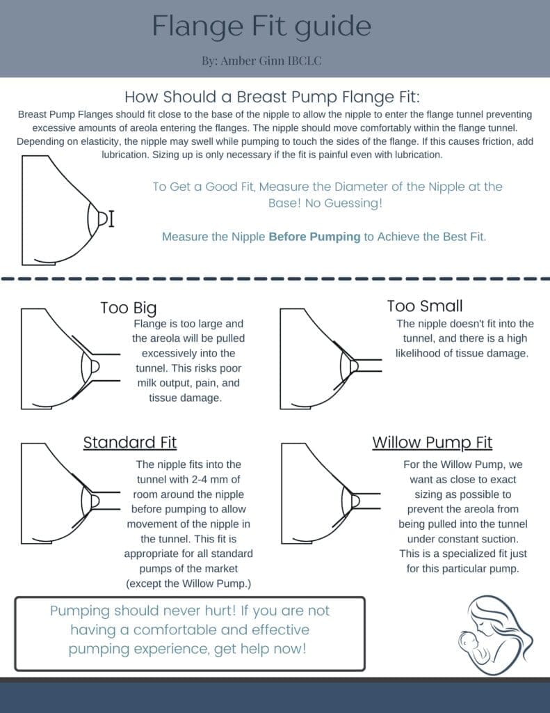 • A flange that’s too small can cause pain and restrict milk flow, while a flange that’s too large may reduce suction and leave milk behind.